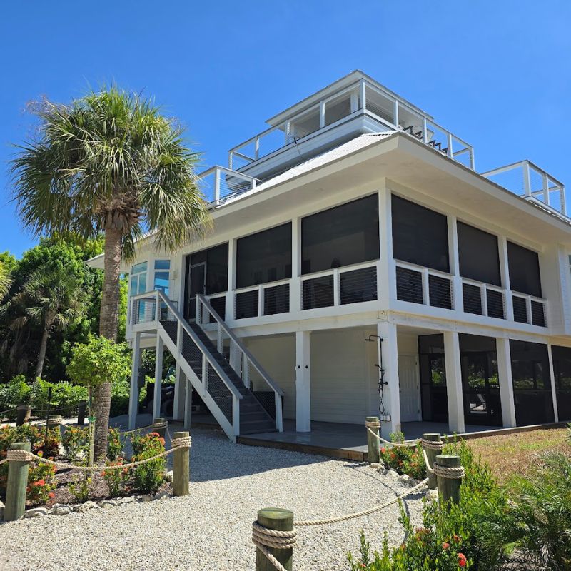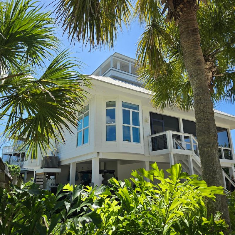 Impact-rated windows with Miami-Dade NOA approvals, hurricane straps, moisture-resistant framing, and corrosion-resistant coastal hardware.